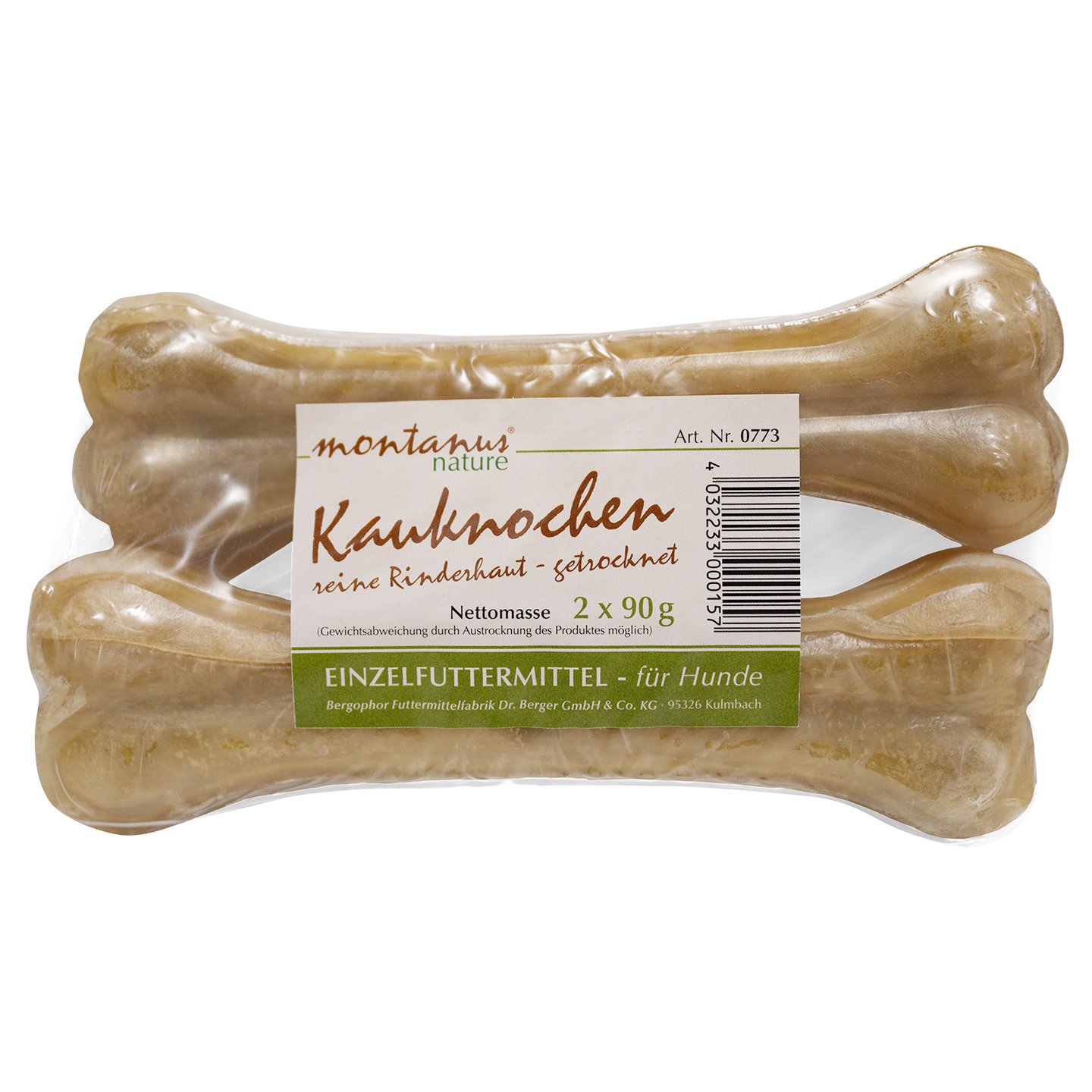 montanus® nature Kauknochen (chewing bone) made from pressed cowskin offer long-lasting chewing fun for small and large dogs. Chewing strengthens the teeth and supports the dental hygiene of dogs in a natural way.